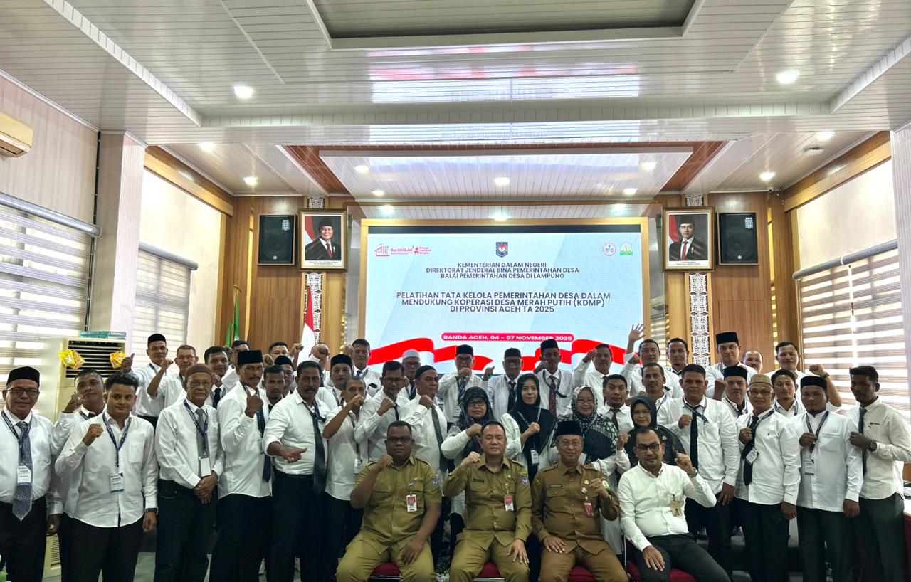 Banda Aceh, 4 November 2025 – Balai Pemerintahan Desa di Lampung kembali menggelar Pelatihan Tata Kelola Pemerintahan Desa dalam Mendukung Koperasi Desa Merah Putih (KDMP) bagi aparatur desa dari Provinsi Aceh dan Provinsi Lampung. Kegiatan ini berlangsung selama empat hari, mulai tanggal 4 hingga 7 November 2025, dengan peserta yang berasal dari unsur Kepala Desa, Sekretaris Desa, dan Badan Permusyawaratan Desa (BPD).