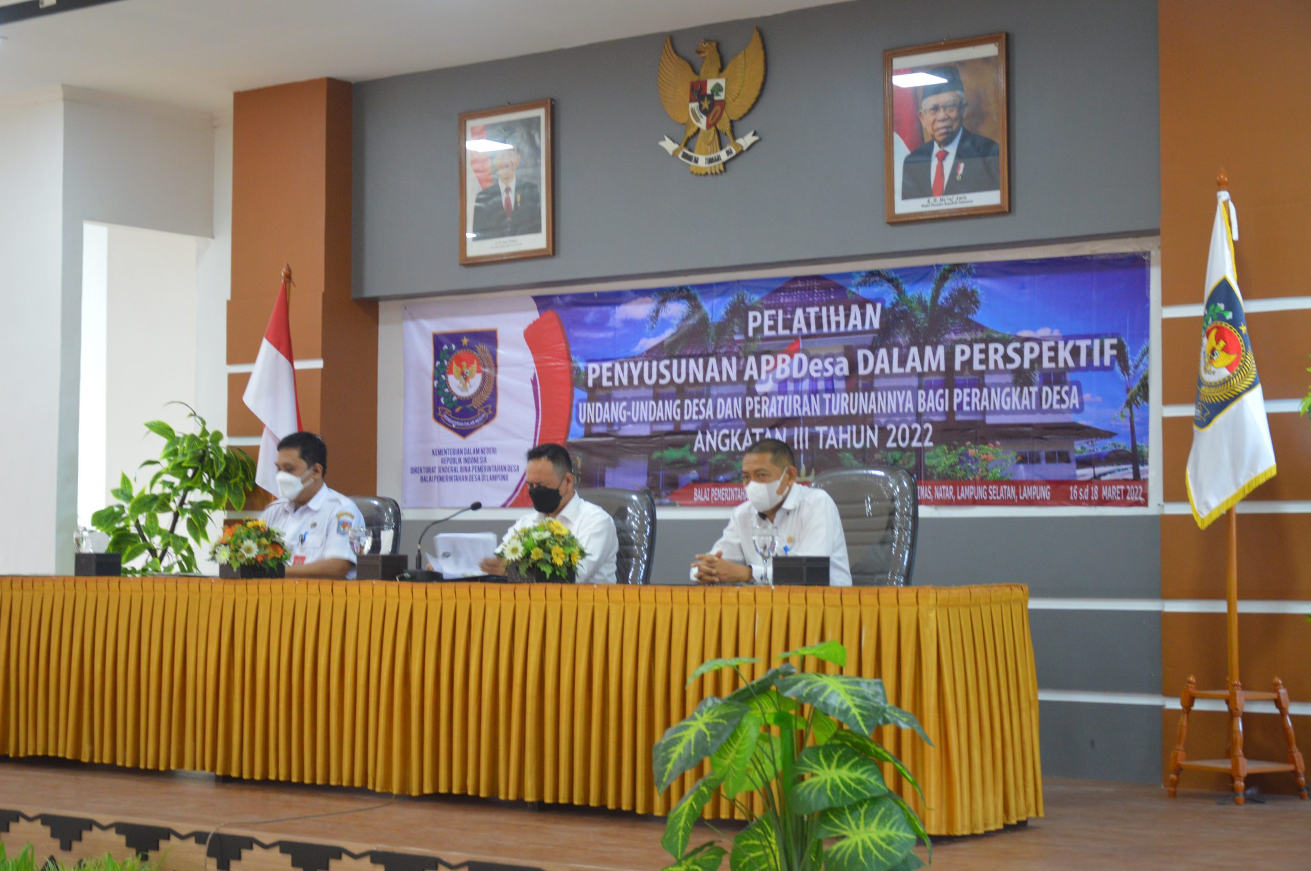 Natar, Lampung Selatan. Balai Pemerintahan Desa di Lampung melaksanakan Pelatihan Penyusunan Anggaran Pendapatan dan Belanja Desa Angkatan 3 dan 4 Tahun 2022, Jum’at (18/3/2022)